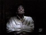Plötzlich überkommt sie eine merkwürdige Schwäche. Sie schließt die Augen und stolpert unsicher rückwärts, fast so als ob sie Schmerzen hätte. Der Vampir nutzt die Chance und greift an. Er packt sie an der Jacke, reißt sie herum und wirft sie auf einen Picknicktisch. Sie rollt herunter auf den Boden. Der Vampir springt auf sie. Angsterfüllt dreht sie ihren Kopf zur Seite. Er hält ihr rechtes Handgelenk fest und reißt mit der anderen ihre Hand herum, verletzt sie und läßt sie schreien. Der Pflock deutet jetzt auf ihre eigene Brust, und der Vampir nutzt sein ganzes Gewicht um ihn langsam nach unten zu drücken.