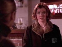 Buffy: Ja, darauf kannst du wetten. Aber ich muß es wissen. Wenn er wirklich aufgegeben hat, dann müssen Dawn und ich unbedingt aus der Stadt. Ich meine, sie könnte bereits auf dem Weg hierher sein.
